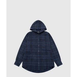 체크 후드 셔츠 코트 > 의류